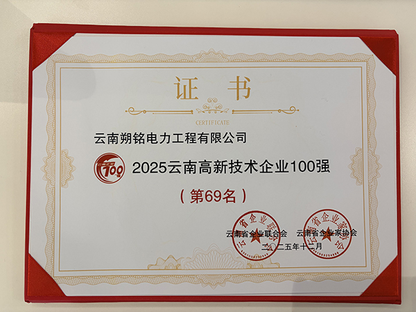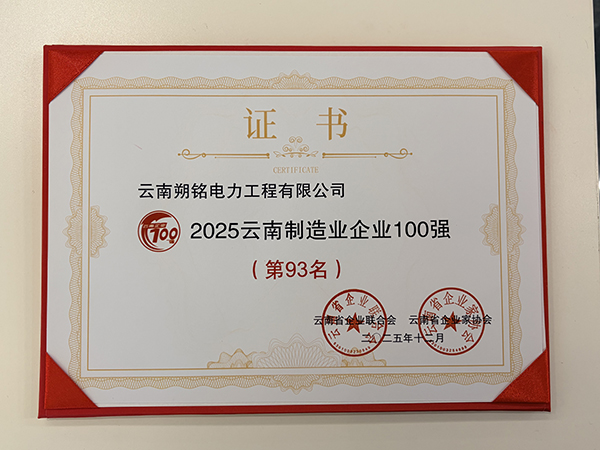 在激烈的竞争中,朔铭电力脱颖而出,一举斩获两项重要荣誉:位列2025年云南制造业企业100强第93名,同时荣登2025年云南高新技术企业100强第69名。这两项排名不仅是对公司深耕电力工程领域多年成果的高度认可,更彰显了公司在制造业转型升级与高新技术创新方面的坚实实力。