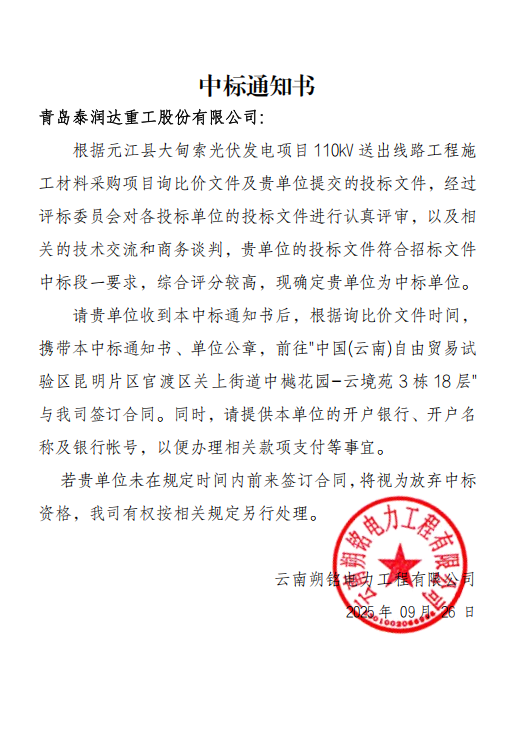 下一篇:中标通知书——河北高亚电力器材有限公司